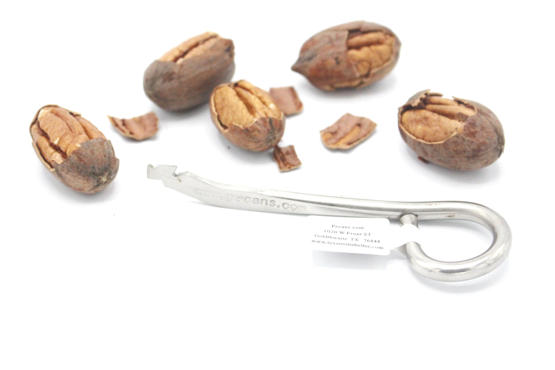 A simple and easy to use handheld tool to swipe between ridges of the nut and remove wedged and stubborn shells.