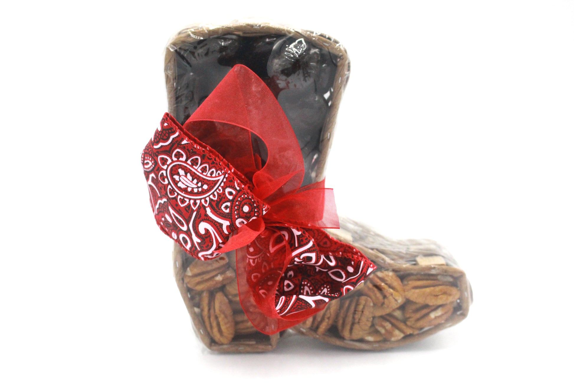 Boot scooting goodie, with fresh, raw pecans packed together with Dark Chocolate pecans for a two-stepping good time! Great gift with some Texas twang.