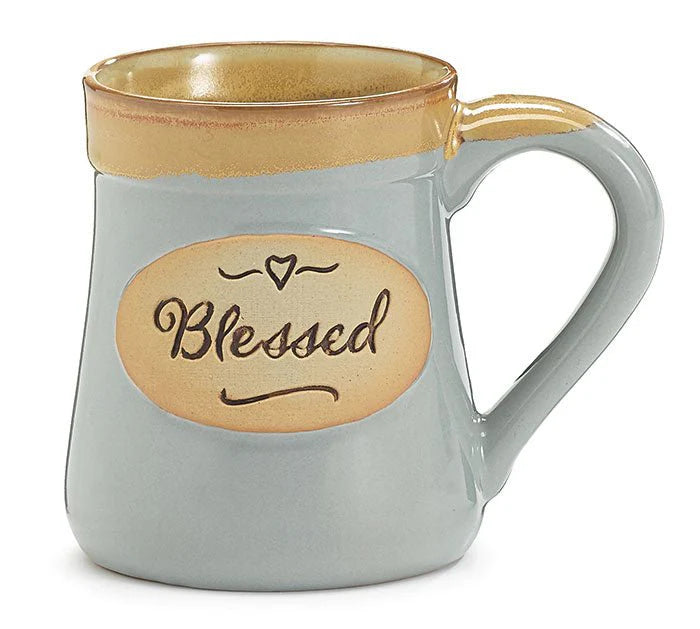 Embossed with a "Blessed" message on the front, and a "Every Good and Perfect Gift Is From Above (James 1:17)" message on the back, this mug serves as a beautiful reminder of God's grace and abundant love.