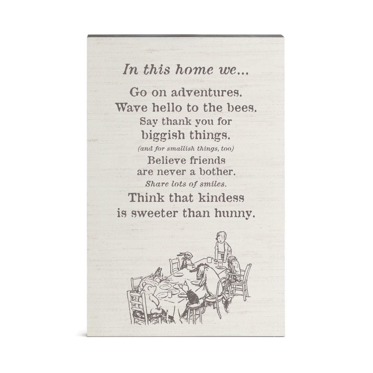 Winnie-the-Pooh and friends are here to brighten your days in wonderful ways. Celebrate friendships, inspire new adventures and make together times better with the In This Home Wall Art - 12x18. Classic artistry is paired with warm, welcoming and whimsical Hundred Acre Wood wisdom you won't find anywhere else.
